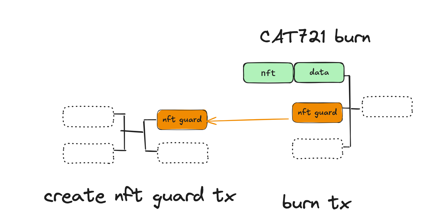 Just as the burning schema for CAT20 tokens can be applied to CAT721 tokens. However, it’s important to note that you should use a CAT721Guard specifically designed for burning CAT721 tokens.