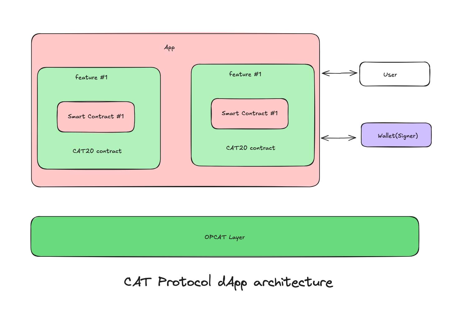 The CAT protocol is designed to work on the OP_CAT layer network. To construct decentralized applications based on the CAT protocol, here's our recommended architecture design.